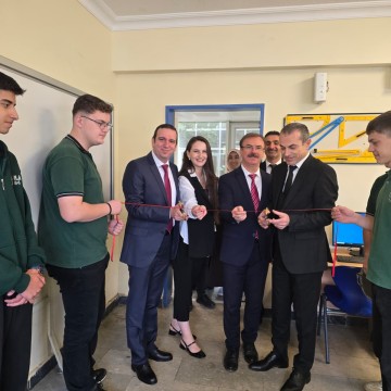The opening programme of the renovated classroom was held on 15 October 2025, hosted by District Branch Manager Ekrem Çelik, School Principal Gürsel Ergün and Mechanical Technologies Teacher Hidayet Akıncı. Our Internal Audit Manager Mustafa Kemal Çalışkan, System and Network Specialist Ercan Acar and Human Resources Specialist Handenur Başar were present at the ceremony.