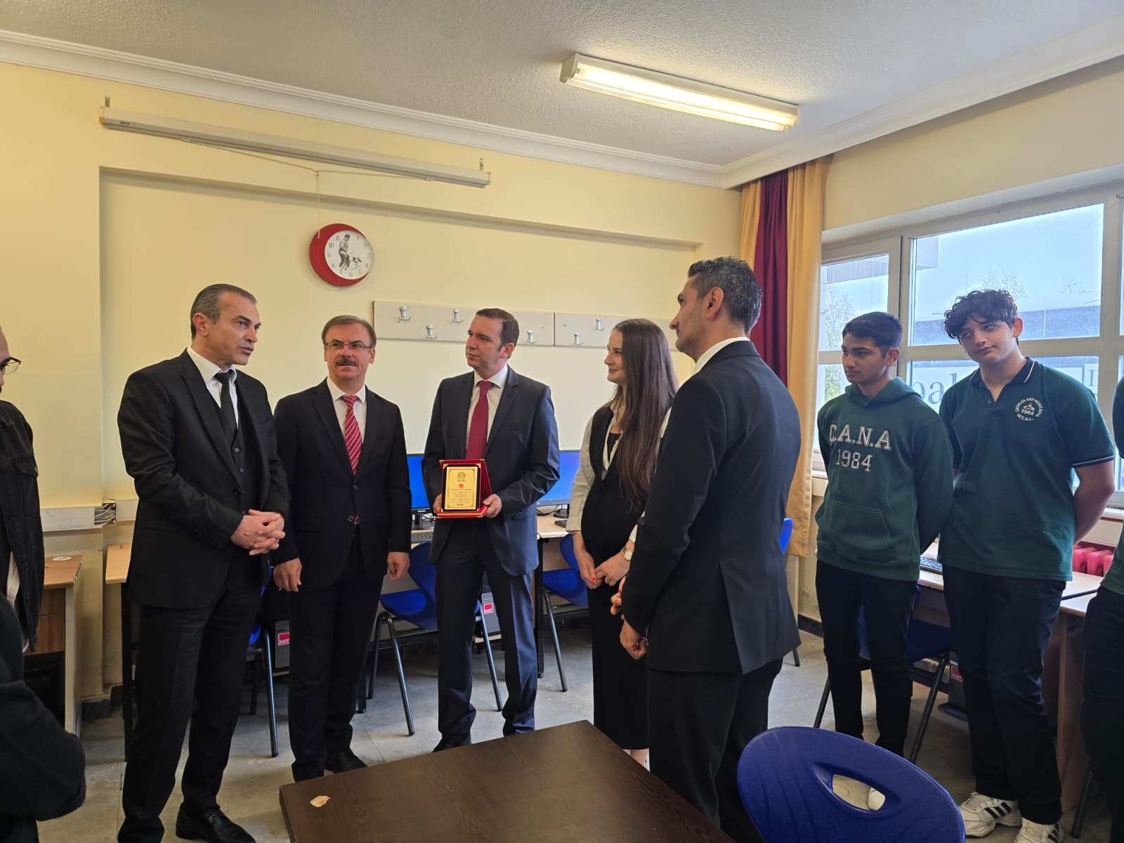 Within the scope of the programme, a plaque was presented. Afterwards, the workshops of the school were visited and technical processes were examined on-site by chatting with the students.